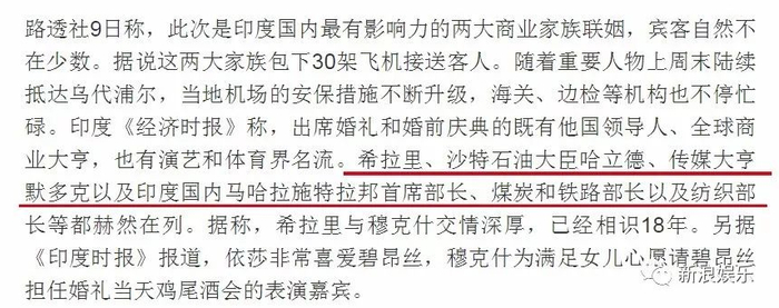 新郎的父亲阿贾伊·皮拉马尔掌管的印度皮拉马尔集团价值约50亿美元,涉足医疗保健品和房地产等众多领域。