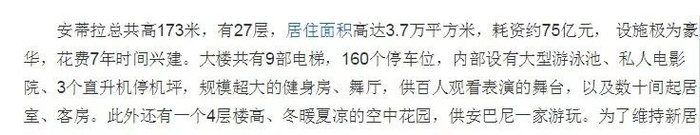 2011年,穆克什斥资10亿美元(约67亿元),给自己建造了一栋“世界最贵住宅”,Antilia 。