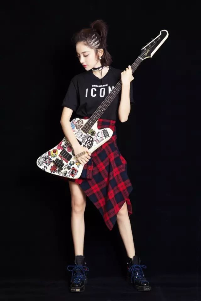 虽然戏外如此小仙女,但是在这部电影里,古力娜扎却完全颠覆自我,扎起头发梳起小辫,变身为弹贝斯的摇滚女青年。