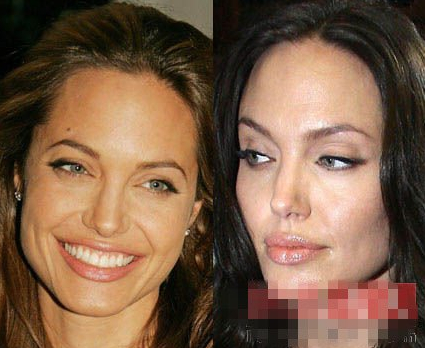 安吉丽娜·茱丽 左图是安吉丽娜·茱丽几年前的照片,现在的她看起来更年轻。或者你可以认为妊娠可以使一个女人看上去年轻10岁,但我还是觉得botox的可能性作用大点。