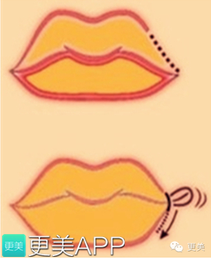 手术需要在沿着上唇线画切开线,两侧嘴角做一个小切口,将两边的嘴角向上提,矫正嘴角下垂,做出微笑唇。