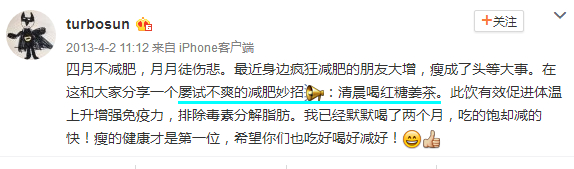 除了吃,日常保养武装到脚,搜了一下她的微博,简直是按照24节气提醒大家要每天泡脚。