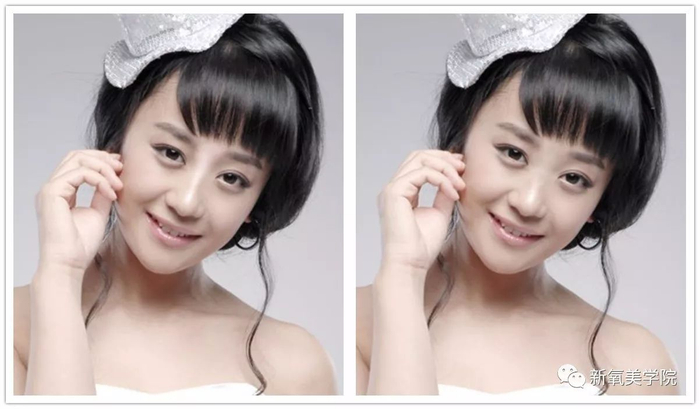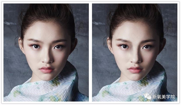 2、加多外部留白可以让眼距变近,除了颧弓加假体,填充太阳穴也可以起到类似的作用,比如下图右边填充后,就比左边看起来眼距要近,更有精神。