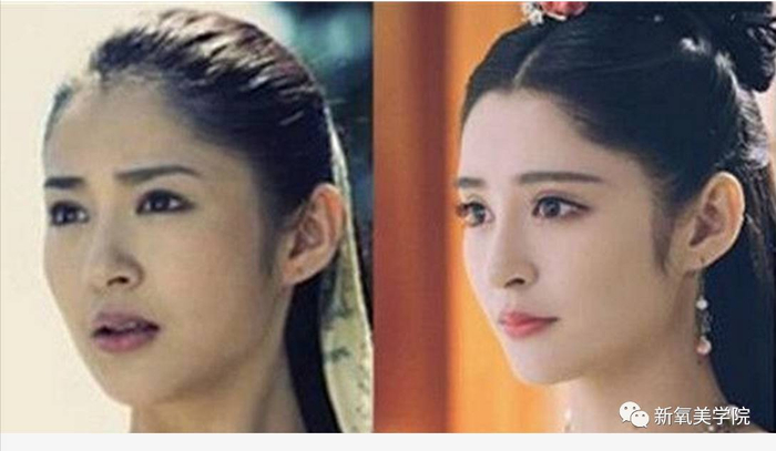 3、眼睑下至,或者加扇形下垂卧蚕,让攻击力代偿性降低。李菲儿瞳距这么近,但看起来还少女,下垂眼和卧蚕帮了大忙。右边没有下垂眼和卧蚕的李菲儿是不是看起来瞳距更近了?