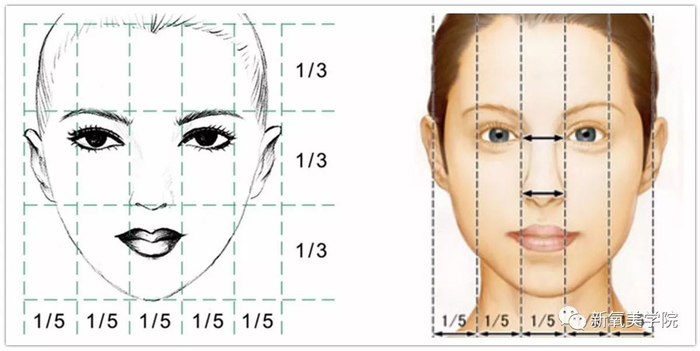 之前我们受到的审美教育是说三庭五眼,但是这个概念其实比较模糊,比如说脸部的宽窄截止到哪里其实没有公论。下图左边认为应该算上耳朵,下图右边认为耳朵不应该算,算上整个颅骨的宽窄就行。