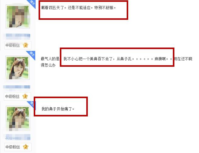 而真正用过几天的妹子说了,鼻子被捅到流鼻血,还一不小心从鼻孔那咽了下去,而且美鼻神器掉进鼻腔内的不是少数,随后还要去医院花钱取出来,得不偿失