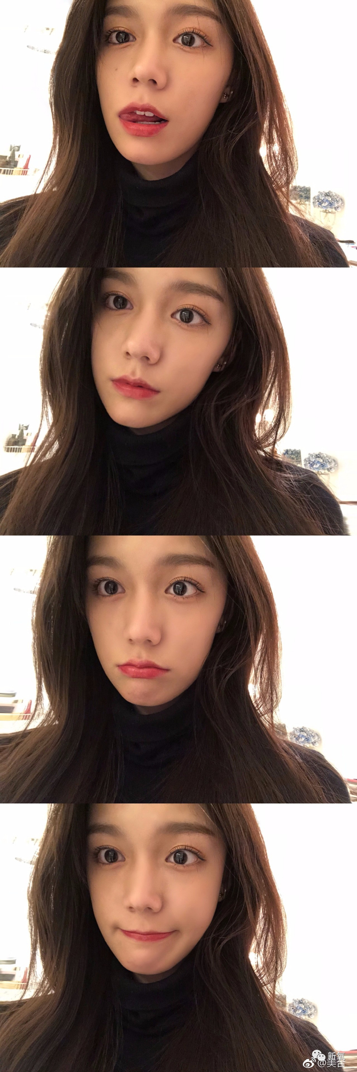 所以她离镜头比较近的自拍或者视频截图,因为这时候脸型已经不是最重要的因素了,人的视觉会注意到五官,这个时候她都会比较好看。