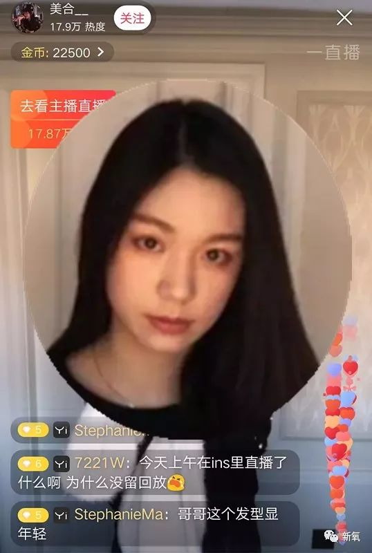 她脸离镜头比较近的直播还是跟她的自拍没什么太大的差别。