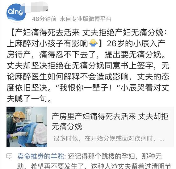 就在最近一个妹子生产痛的死去活来,丈夫却拒绝在无痛分娩同意书上签字,因为他怕麻醉影响孩子,不管医生怎么解释他都不签字,妻子最后喊我恨你一辈子。