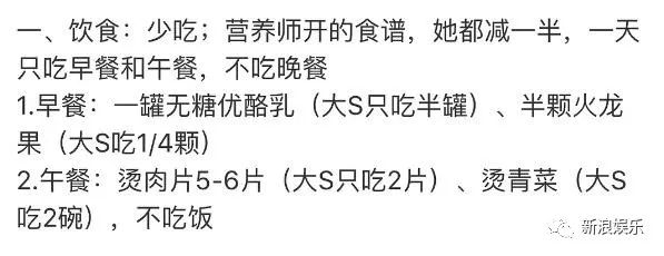 今年年初,网上有曝光过大s的食谱。运动量不是很大。。。。。。。