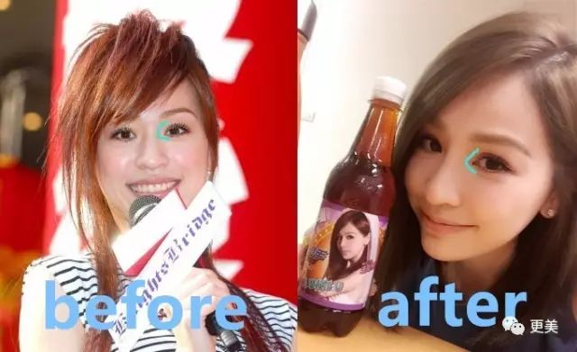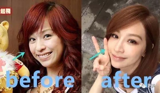 脸型也从以前的小方脸变成了小尖脸,圆下巴变成了尖下巴,脸看起来小了很多。