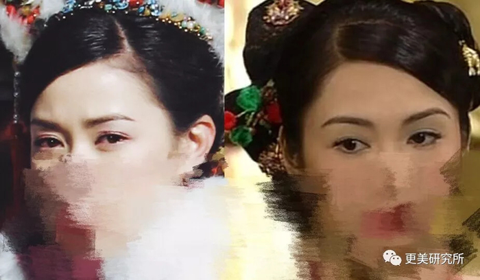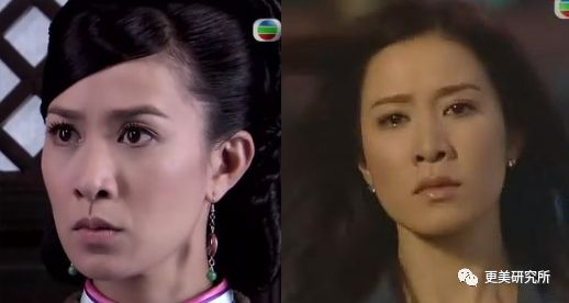 首先就是眼睛这个部位,如果单纯把它拿出来对比,黎姿的眼睛并没有占上风,黎姿的眼睛属于细条型,看起来太锐力,让人有距离感,而阿佘的前后眼角都较钝,眼尾下垂显无辜,更有观众缘。
