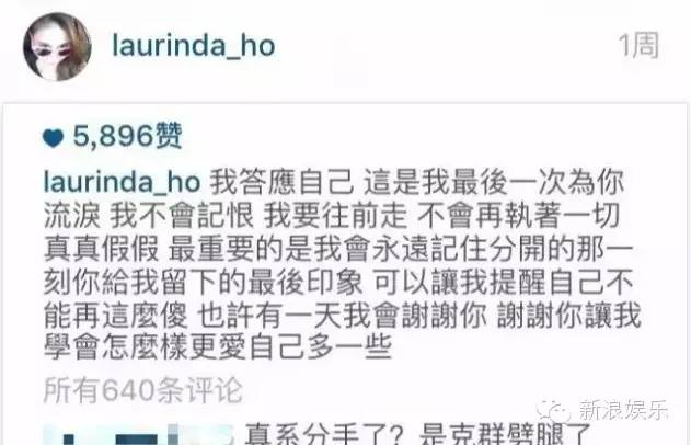 当时,何超莲在脸书上po文,难过的写下:“最后一次为你流泪”。