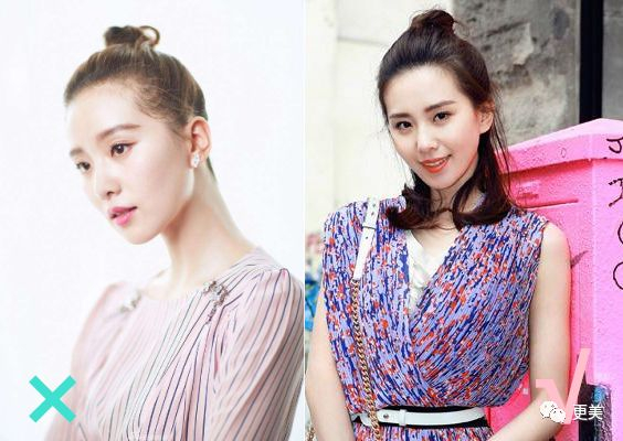 很多颅顶低的女明星都很喜欢扎丸子头,这种发型确实让你的颅顶看起来更高,但是如果你丸子头扎得太紧绷就悲剧了…