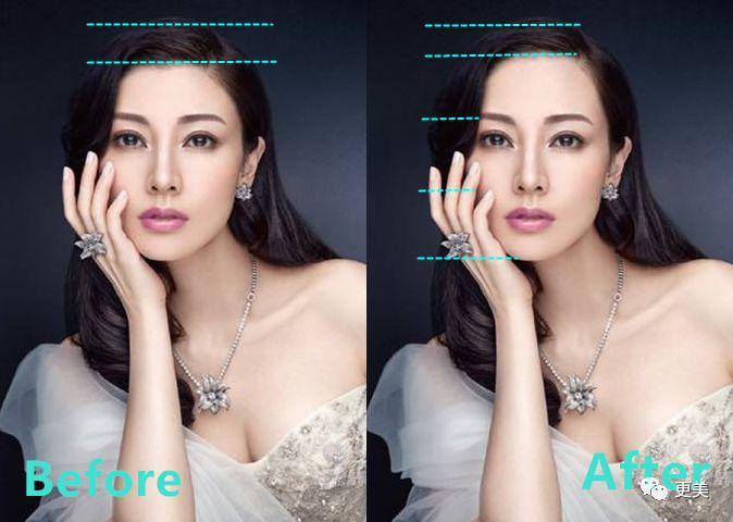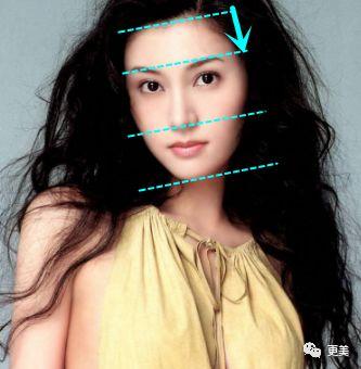 额头过小就剔除部分发际线(只适合本身颅顶比较高的人)。从这个思路来看,李嘉欣是不太合适的,因为她本身颅顶就很低,拉高发际线的话,虽然三庭比例变得标准了,但颅顶变得很低,显得脸很大。