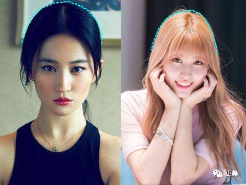 来感受下正面视角下圆颅顶和尖颅顶的差距:刘亦菲从颅顶到颞部的曲线比较平缓,而右边momo从头顶到颞部的线条比较陡峭。