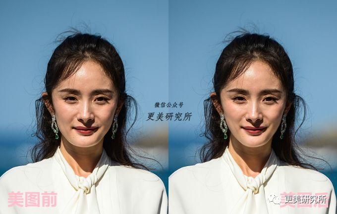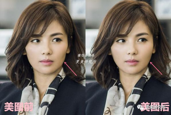 另外,宝宝们还可以了解一下埋线提升,把下垂的肌肉组织往上提,下半张脸的线条就能变得清晰紧致。同时也起到了视觉上缩短下半张脸宽度的效果。小编把大幂幂的下半张脸往上拉了拉,你们瞅瞅她的脸是不是看起来变窄了点?