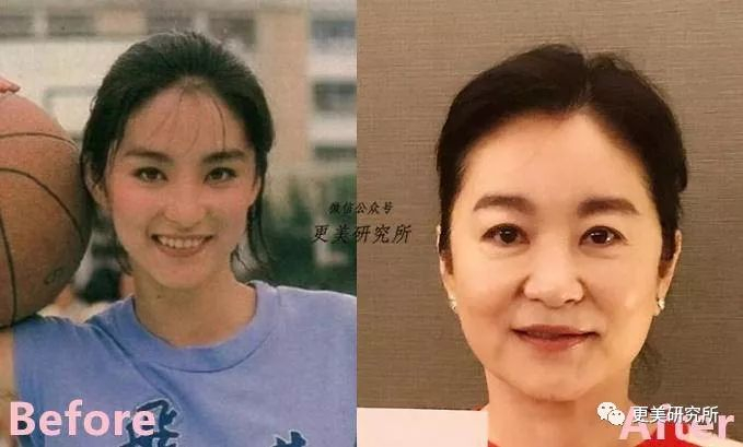 像林青霞的脸宽很大程度上就是松弛下垂的面部组织造成的。年轻时她脸部最宽的位置是在太阳穴,而现在因为下垂堆积的肌肉,视觉上她脸最宽的地方在下半张脸,一对比,就显得下半张脸很宽很笨重,没有以前那么精致。