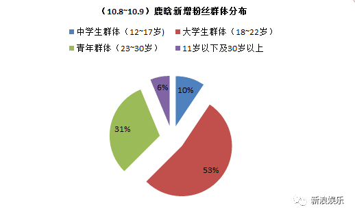 数据显示,当时鹿晗新增粉丝群体中占最大比重的是大学生群体,其次是青年群体。